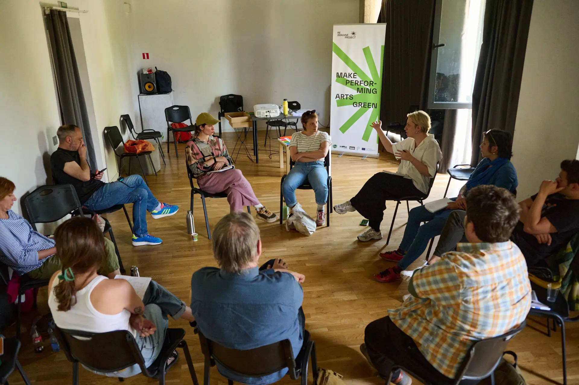 Događaj je okupio studente pozorišnih usmerenja, umetnike, producente, istraživače i druge profesionalce u polju kulture, sa ciljem da se predstave konkretni alati i metodologije za integraciju principa ekološke održivosti i klimatske pravde u izvođačke umetnosti.